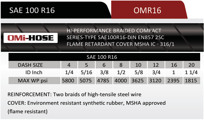 R16-12 | 3/4" R16 Braided Hydraulic Hose, 3625 Max WP PSI